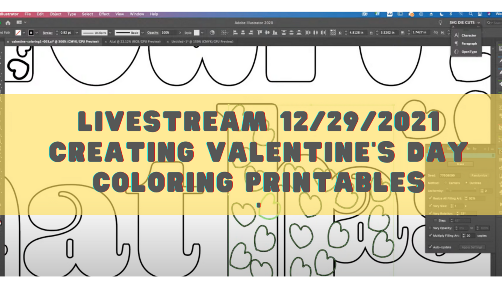 Creating Valentine Text Coloring Pages for KDP or even to sell as printables. During the live stream, I go through using my favorite tools, programs, and resources for graphics. This product is part of a "Overshoulder" Livestream that is broadcast every week on Wednesday @9:00pm EST.